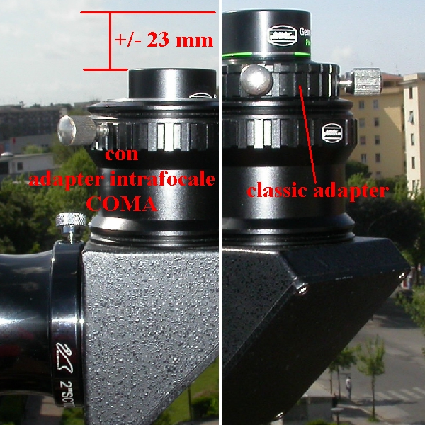 Permette di posizionare in intrafocale gli oculari di diametro 31,8mm su telescopi rifrattori con diagonale da 2 pollici a bassa escursione del fuocheggiatore. Molti rifrattori a causa della bassa corsa del focheggiatore non consenteno di utilizzare oculari da 31,8 se si uitizza un diagonale da 2 pollici in quanto il fuoco rimane all'interno. La tenuta dell'oculare nella posizione desiderata è garantita da due o-ring sul raccordo.