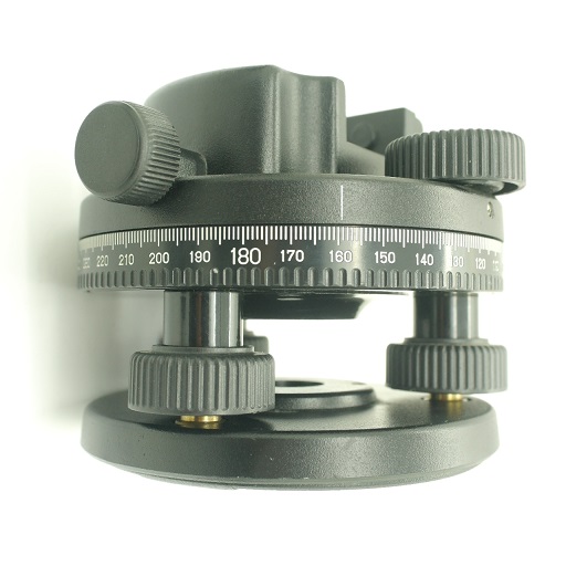 Basetta tricuspide livella con morsa per livellare micro metricamente, con livella sferica e cerchio azimutale. Base filetto standard geodesia (5/8)