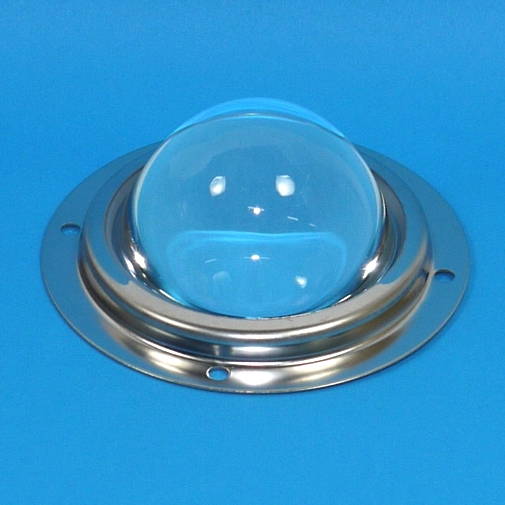 Lente menisco condensatore e protezione Ø 66 a calotta incassata per led da 30 a 200W Caratteristiche tecniche: Vetro : Borosilicato PIREX Diametro bordo esterno 66mm Altezza 33 mm Peso (vetro) 114g Angolo di fascio 60° Accessori flangia in metallo e guarnizione silicone.