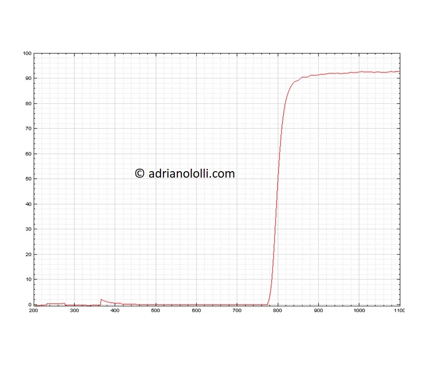 Filtro infrarosso ir pas 800 nanometri in vetro ottico , diametro filetto 58mm . Su richiesta possiamo realizzare filtri e montature con altre lunghezze d'onda e diametri. Finalmente è possibile effettuare ricerche e perizie con una fotocamera predisposta ( in tal caso c'è un comando sulla camera ed è indicato nelle istruzioni) o modificata per l'infrarosso (effettuiamo la modifica su reflex e compatte digitali richiedere preventivo indicando marca è modello della fotocamera). Grazie a questi filtri e alla fotocamera idonea si possono realizzare fotografie creative ed anche fotografare al buio. L'infrarosso è una radiazione invisibile all'occhio umano che parte da una lunghezza d'onda da 700 nanometri e arriva fino a 1 mm. Noi prenderemo in esame solo la parte inferiore, in quanto i sensori di fotocamere e videocamere hanno una sensibilità che generalmente non supera i 1000 nanometri. E' interessante sapere che nel settore infrarosso avvengono fenomeni di assorbimento e riflessione completamente differenti che nel settore del visibile. Inoltre molte cose invisibili all'occhio umano diventano visibili. Grazie a questo effetto sempre più spesso questi filtri applicati a fotocamere sensibili all'infrarosso o su fotocamere con pellicola infrarossa vengono utilizzati per documentare caratteristiche che non sono rivelabili con osservazioni e fotografie di tipo normale. La fotografia infrarossa viene utilizzati in diversi campi tipo medicina, criminologia investigativa, restauro e perizie tecniche dove con successo si riesce ad identificare contraffazioni di scritti e di materiali. Applicazioni del filtro infrarosso: 1) Fotografia a distanza . Grazie alla sua notevole lunghezza d'onda , con la fotografia infrarossa è possibile effettuare riprese a grande distanza riducendo o eliminando l'effetto foschia. Le fotografie satellitari e quelle aeree vengono effettuate nell'infrarosso aumentando così di molto la definizione. 2) Esame dei materiali. Con la fotografia infrarossa è possibile riconoscere i vari tipi di sostanze che apparentemente sul visibile hanno identico colore. Ad esempio due indumenti di colore neri che apparentemente risultano identici, (uno il cotone e l'altro in materiale acrilico) nell'infrarosso l'acrilico risulterà perfettamente trasparente come se non ci fosse. Quindi attenzione all'abbigliamento indossato, si rischia che qualcuno dica "vedo nudo". 3) Astrofotografia. La fotografia infrarossa è molto adatta alle riprese astronomiche perché non tiene conto della luce diffusa proveniente dalla luna. Il cielo è quindi anche di notte più scuro di quanto si avrebbe con la fotocamera classica e senza filtro. Un' altra applicazione in astronomia è l'analisi e rivelazione della materia dei corpi celesti. Alcune Nebulose appaiono molto più evidenti se fotografate nell'infrarosso. Nella nebulosa di Orione nella fotografia tradizionale si può riconoscere un numero relativamente piccolo di stelle di colore azzurro-verde, mentre nell'infrarosso ne vengono impresse molto di più, inoltre e' permessa una visione della nebulosa molto più chiara. Un altro esempio dell'utilità della astrofotografia infrarossa è riferito all'anello di Saturno. Sappiamo benissimo che questo pianeta è circondato da anelli, ma non tutti sanno che una fascia d'anello risulta, nell'infrarosso, essere molto più luminoso del pianeta stesso . Questo metodo consentì nel passato ( prima delle sonde spaziali) di avvalorare che la teoria che gli anelli erano composti da polvere cosmica. 4) Botanica. Rivelazioni e analisi sulla clorofilla e stato di salute della piante. 5) Paleontologia. Grandi successi sono stati ottenuti grazie all'utilizzo della fotografia infrarossa nella ricerca di animali e piante fossili carbonizzati. Le microfotografie infrarosse evidenziano particolari che con la fotografia tradizionale non sono visibili. 6) Bibliografia. Molte scoperte sono state resi evidenti grazie alla fotografia infrarossa. Scritti antichi effettuati su pergamene, papiri, pelli , terracotta e muri non più leggibili, in quanto la sostanza colorante di cui si servi per scriverli è completamente consumata, la parte che è stata assorbita dalla superficie è di nuovo visibile grazie all'infrarosso. 7) Arte pittorica. Per poter determinare l'autenticità di un dipinto, quindi il poter riconoscerlo da un falso anche se ben fatto, si fà ricorso a tecniche speciali tipo la fotografia infrarossa , la fotografia ultravioletta e la fotografia Rontgen. Grazie al filtro infrarosso è possibile evidenziare e catalogare i colori, rilevare altri disegni, sbozzi o firme coperti dal colore di superficie, anche se sono del tutto invisibili in condizioni normali. 8) Criminologia. Con la fotografia infrarossa e possibile rilevare ematomi a distanza di tempo. Si riesce a rendere visibili scritte che sono state cancellate o coperte con altre inchiostro o addirittura coperte o superficialmente asportate. Si distingue le differenti tipologie di inchiostri utilizzati su documenti anche se a vista sembrano dello stesso colore ( qui è utile l'impiego di differenti filtri a lunghezza d'onda differente). Con filtri superiori a 850 nm si riesce a distinguere le perle vere da quelle false. Con l'aiuto della fotografia infrarossa e possibile stabilire la distanza da cui è stato sparato un colpo, il numero delle righe dell'arma, si può arrivare ad accertare quale dei colpi sparati dalla stessa arma è il primo. E possibile fotografare le impronte sulla carta se questa prima della foto viene ipolverata con il nerofumo. In caso di sospetto suicidio per arma da fuoco si può stabilire se lo sparo è stato effettivamente fatto a bruciapelo oppure scoprire che si tratta di omicidio. Con la fotografia infrarossa è possibile, rilevare tracce di sangue su vestiti, pareti, pavimenti e mobili. 9) Dermatologia. Grande in portanza riveste l'impiego dell'infrarosso nello studio e analisi della pelle, sia per la diagnostica che per la valutazi