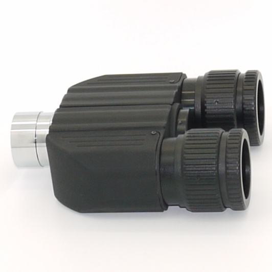 Torretta bioculare per telescopi rifrattori, S/C, mak, Newton ecc. con attacco oculari diametro 31.8 1,25'' più estrattore di fuoco, sistema di messa a fuoco indipendente , bloccaggio a collare di serraggio. Diametro ostruzione prismi 27 mm.